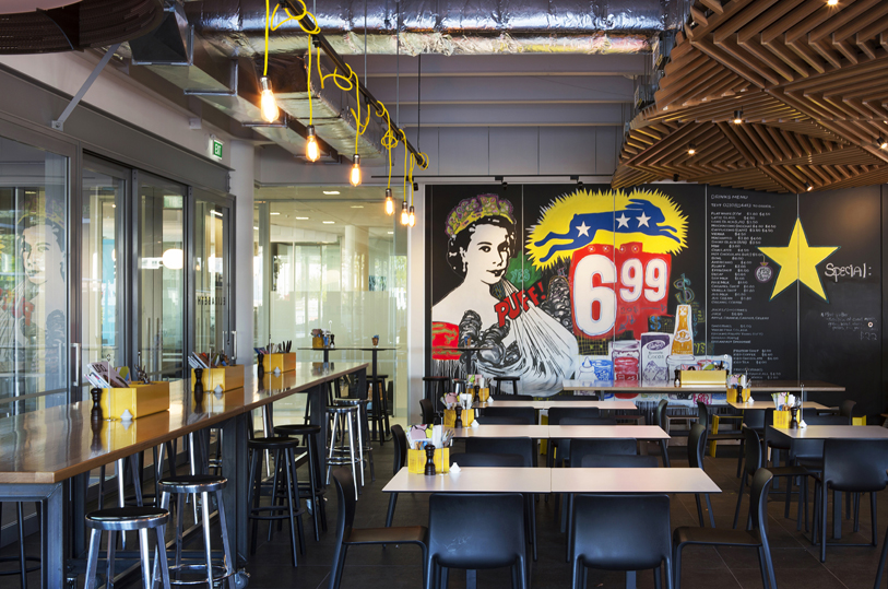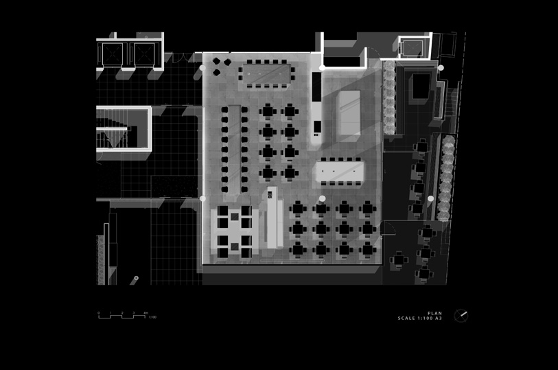 The clients brief was to provide a cafe that operated during the working day to service the 450 on-site office workers, their visitors and the public. In addition it was to be open in the evenings for dinner and to act as a weekend destination.